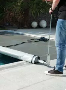 So wird das Aufrollen Ihrer Schwimmbadabdeckung zum Kinderspiel! Ohne Anstrengung in weniger als 3 Minuten (Becken 10 x 5 m) Robust und stabil dank der R.der mit großem Durchmesser. Am Ende des Wickelvorgangs ermöglicht die “Reverse”-Funktion ein einfaches Auskuppeln von RollPower.
