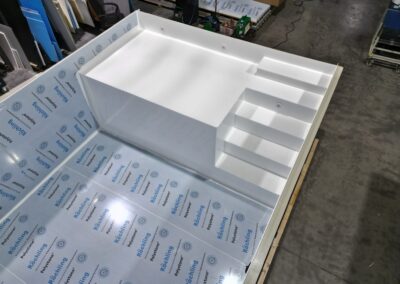 Für den Bau unserer Schwimmbecken verwenden wir ausschließlich Polystone® P PG und P PGX Plattenmaterial der Firma Röchling, von höchster Qualität. Eine Haltbarkeit von bis zu 50 Jahren und mehr stellt für dieses Material kein Problem dar.