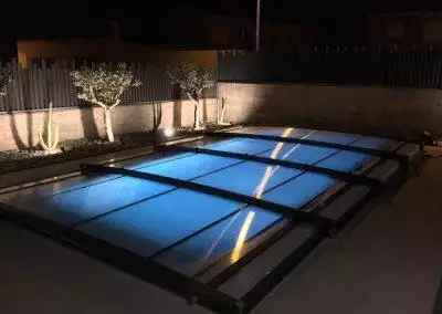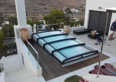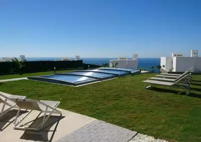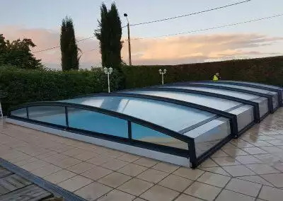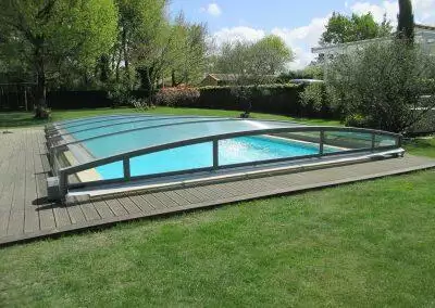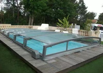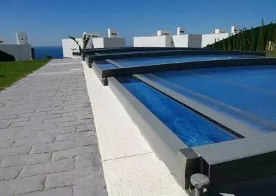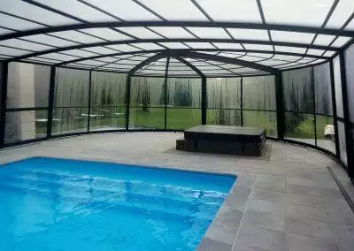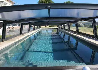 Wir bieten exklusiv die Überdachungen von Azenco aus Frankreich an, die auf Ihre individuellen Wünsche zugeschnitten werden können. Die Abdeckungen sind in verschiedenen Größen und Ausführungen erhältlich, von flachen Abdeckungen bis hin zu großen Hallen. Genauso wie unsere PP-Pools werden die Überdachungen nach Maß gefertigt, um perfekt auf Ihren Pool zugeschnitten zu sein. Ein besonderer Vorteil der Azenco-Schiebehallen ist die schmale Führungsleiste, die eine komfortable und platzsparende Nutzung ermöglicht.