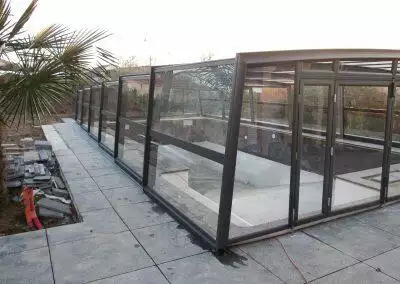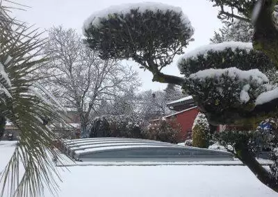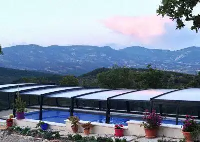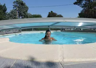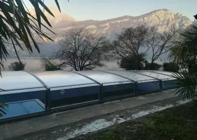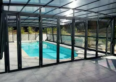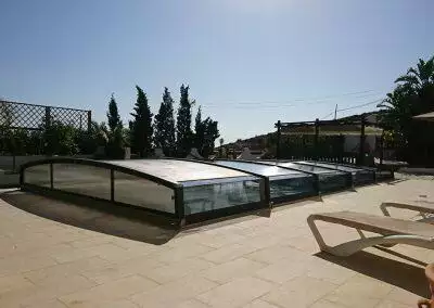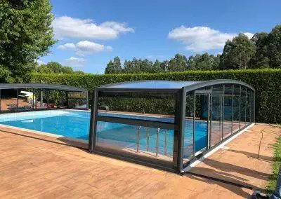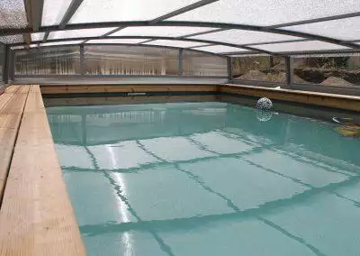 Die Schiebehallen nutzen die Sonnenstrahlen, um Wärme zu erzeugen, die direkt im Pool gespeichert wird. Zudem schützt die Überdachung den Pool vor Verschmutzungen und anderen äußeren Einflüssen.